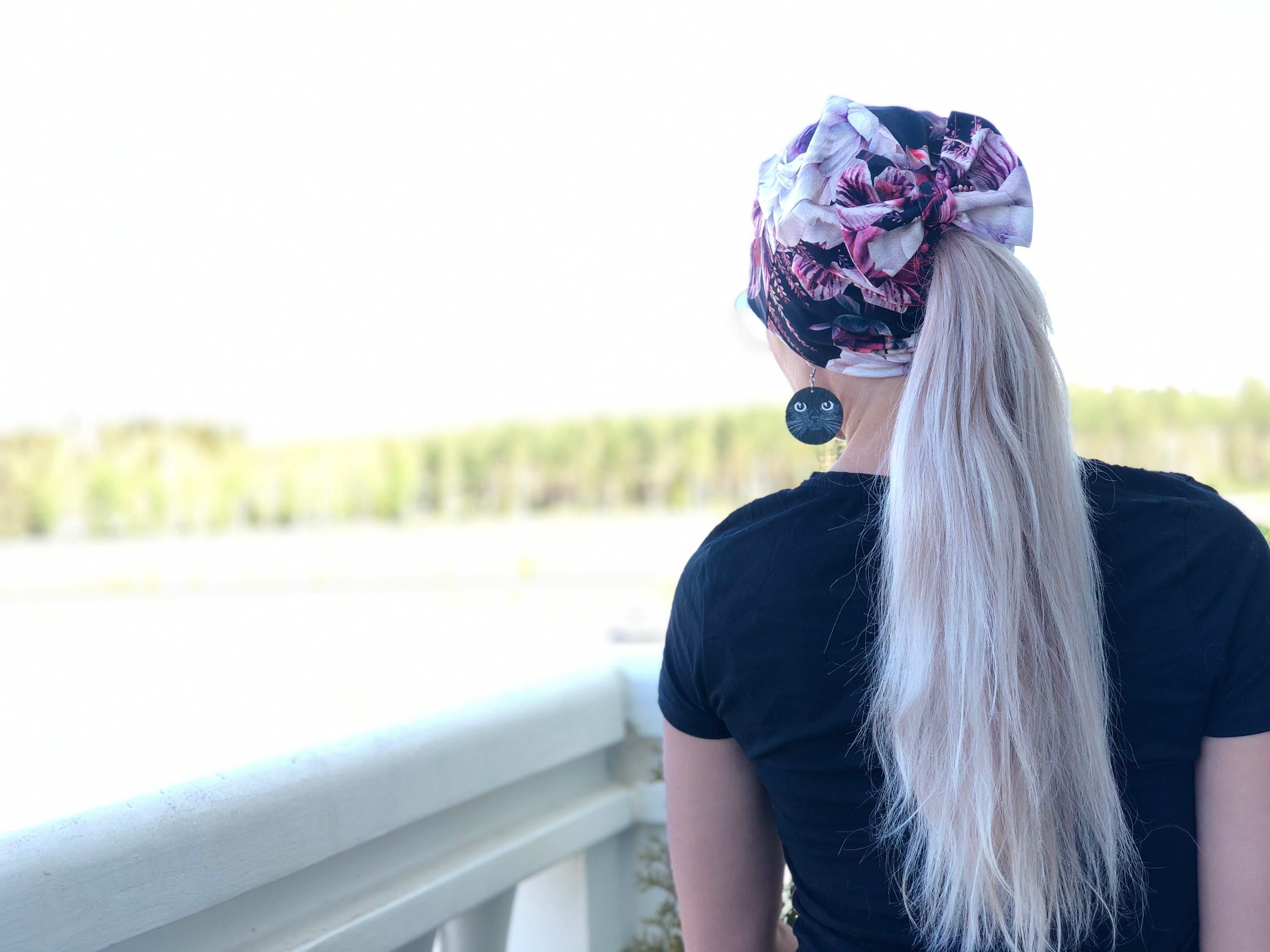 Viimein valikoimasta löytyy matalammalle niskaponnarille sopiva ponnaripipo. Pipossa olevan ruusukkeen sisältä voit pujottaa ponnarisi ulos pipon sisältä painamasta. Eikä siinä vielä kaikki! Kun käännät ruusukkeen etupuolelle, sinulla on viehättävä turbaanimallinen pipo. Voit availla käsin ruusukkeen reunoja muhkeammaksi halutessasi. Ruusukkeen sisällä kulkee vahva kuminauha joka pitää sen hyvin kuosissaan. Pipon taite pitää korvasi lämpimänä, ja voit säätää sen korkeutta mieleiseksesi. Lemmu on erittäin pehmeä, joustava sekä miellyttävän tuntuinen ja se mahtuu hyvin noin 55/56-59 cm päähän.
